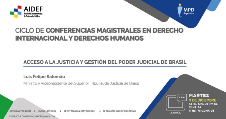 El martes 9 de diciembre se invita a los defensores públicos a un nuevo encuentro como parte del Ciclo de Conferencias Magistrales y Derechos Humanos. El tema a ser tratado será: «Acceso a la Justicia y Gestión del Poder Judicial del Brasil».